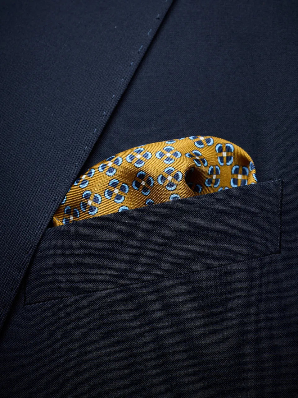 When choosing the colour of your pocket square, choose the major colour in your tie to match.