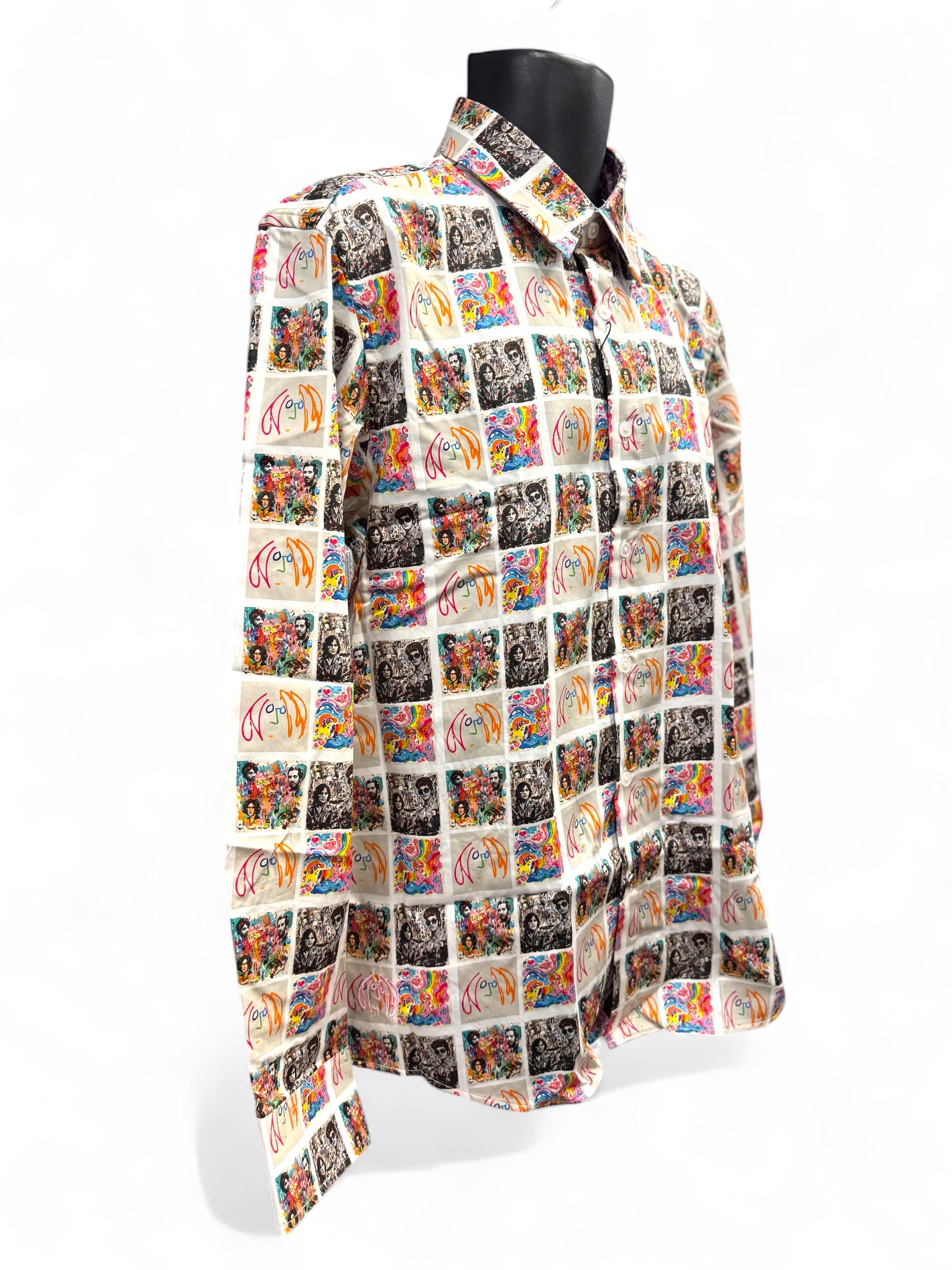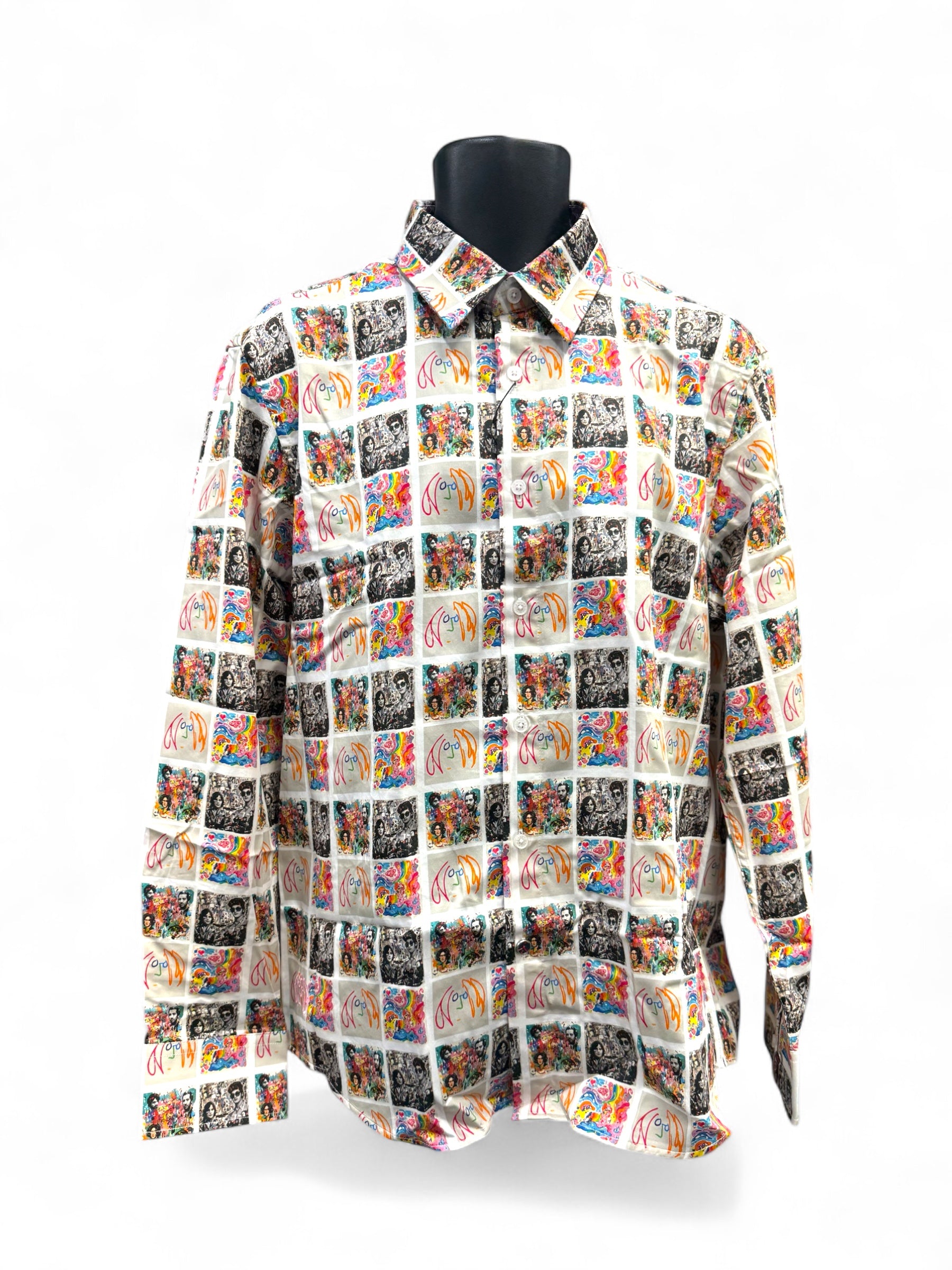 Take a glance into the life of John Lennon with this brightly illustrated shirt, a homage to the man that brought this brand to life.