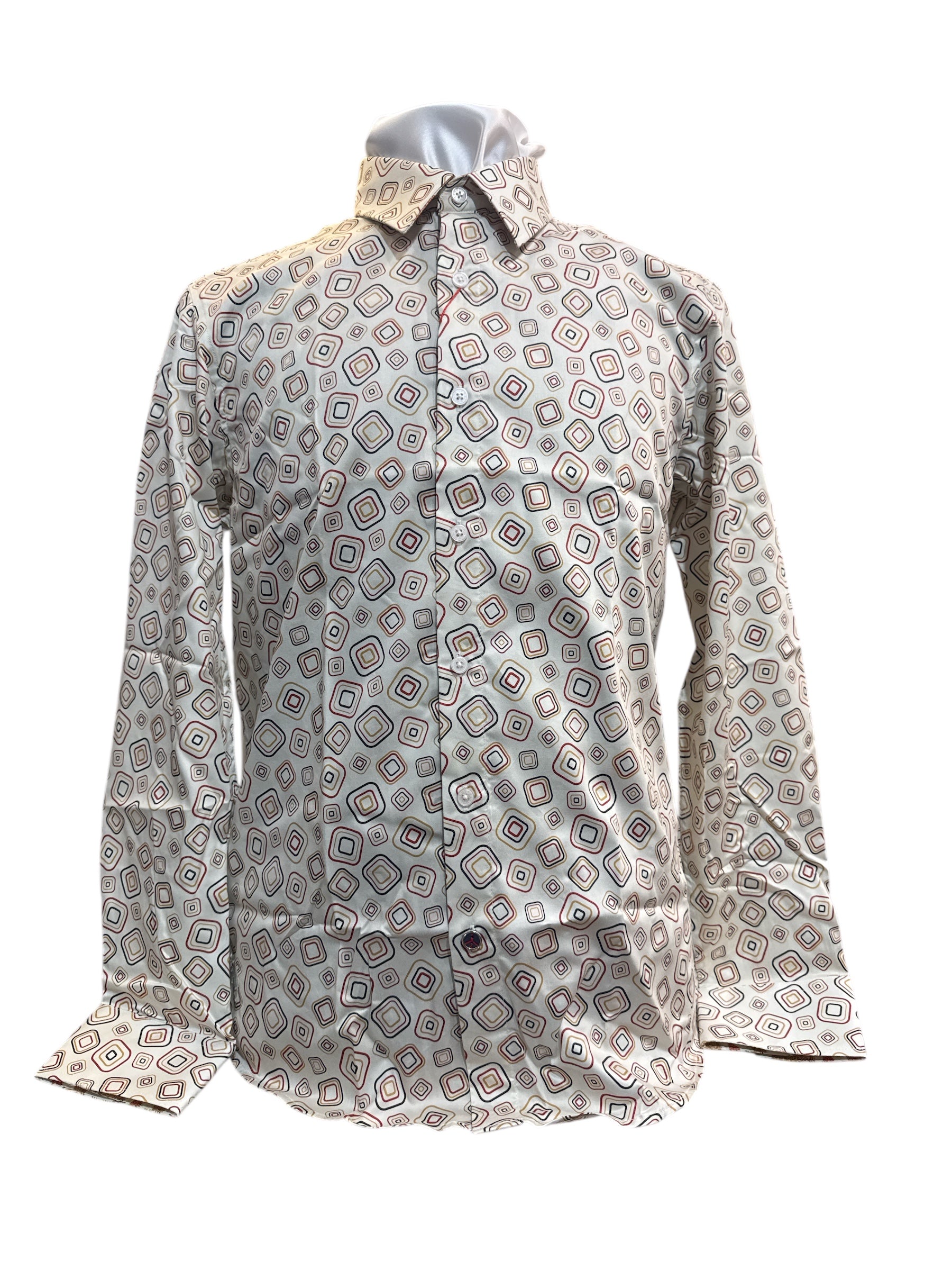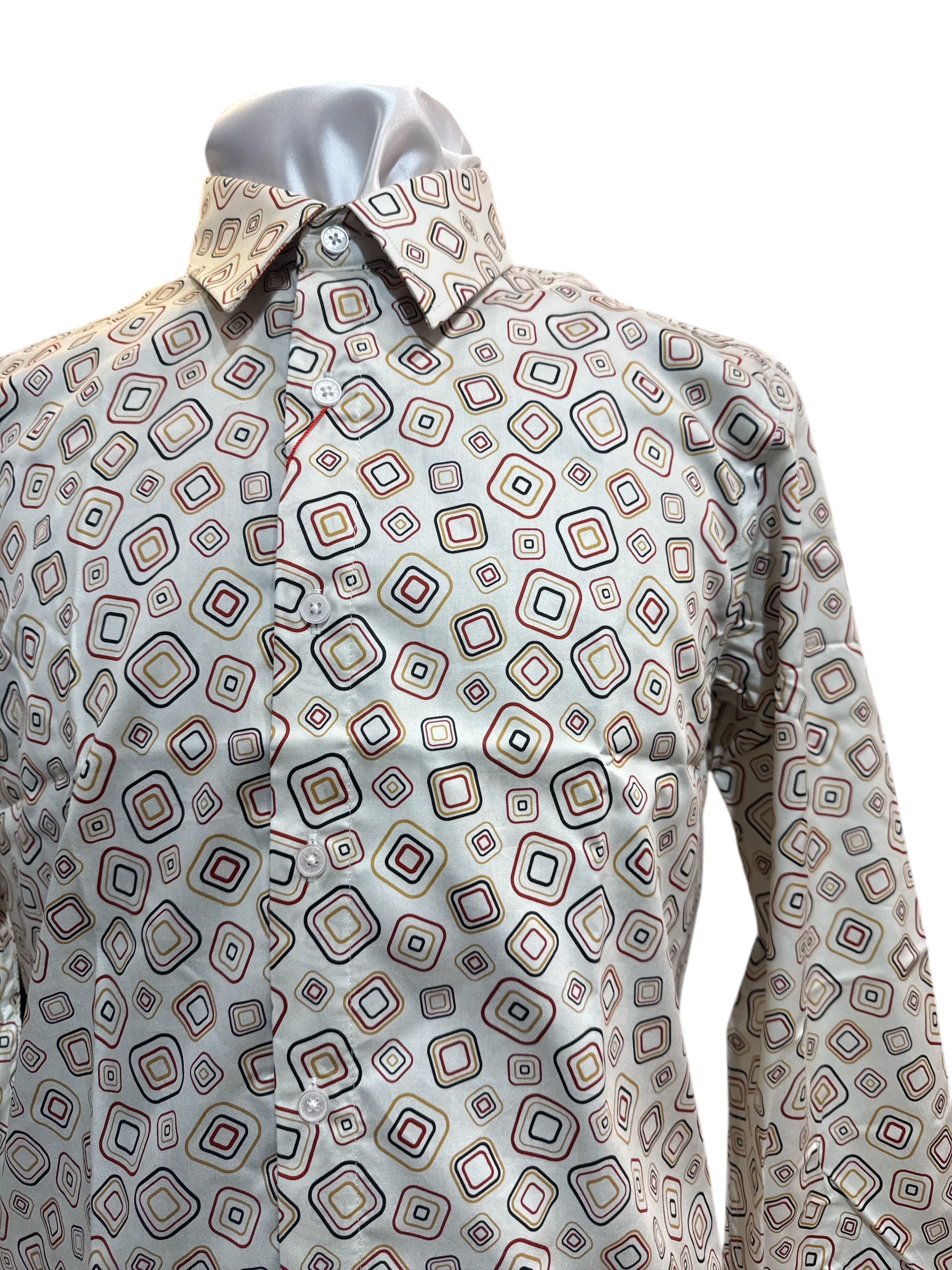 Turn up the volume on your wardrobe with the John Lennon Oxford Road Shirt – where retro flair meets modern cool. In a lively sand base, this long sleeve is lit up with a playful diamond-in-diamond print in shades of red, mustard, and black – a perfect nod to Lennon’s legendary love for bold expression and rebellious charm.